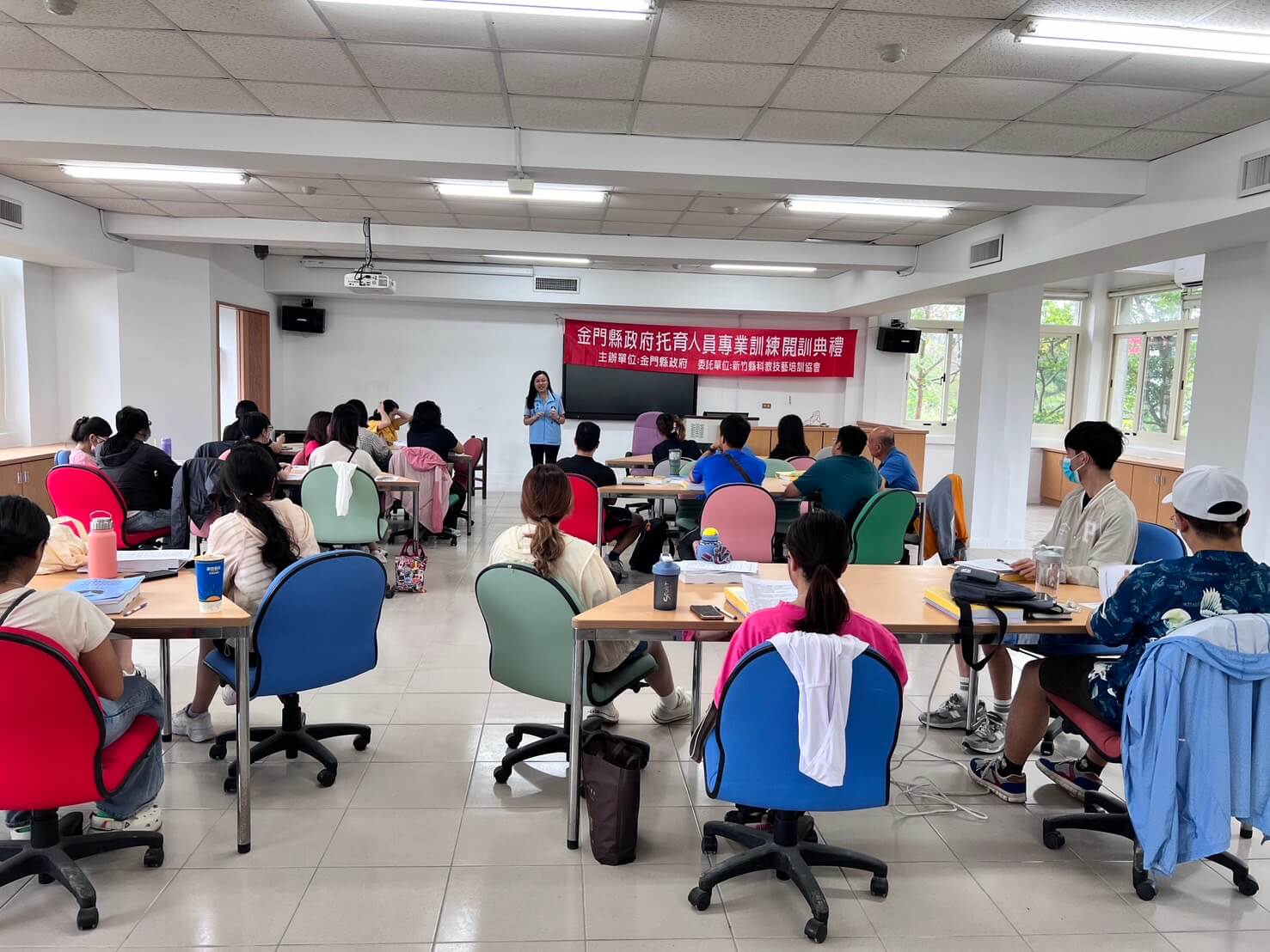 金門縣為建構完整托育制度,縣府社會處在金門農工辦理113年度金門縣兒童及少年福利機構主管人員暨托育人員訓練班始業式,由社會處李科長品萱代表陳縣長主持開訓,計2班次60人參訓,本次訓練依據衛生福利部「兒童及少年福利機構專業人員訓練實施計畫」,由新竹縣科教技藝培訓協會承攬辦理。