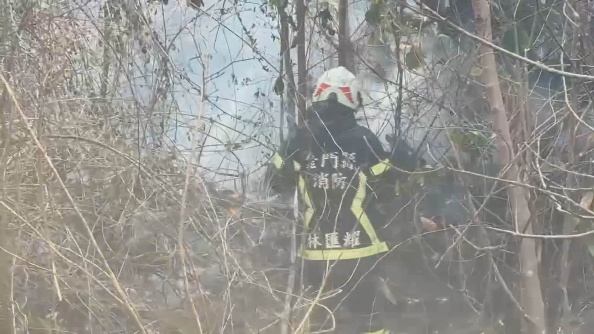 金門新湖漁港防風林火警! 燃燒面積500平方公尺(攝影/于家豪)