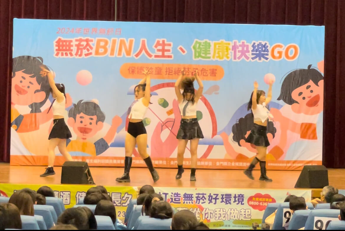 為響應5月31日世界無菸日,金門縣衛生局於5月29日上午假金城國中藝文中心舉辦113年世界無菸日《無菸 BIN人生、健康快樂go》宣導活動,由衛生局李副局長及金城國中謝志偉校長帶領現場青少年朋友一同宣讀拒菸檳宣言,共同倡議「我不吸菸、不嚼檳榔;我拒菸檳,我驕傲」;活動邀請國內百萬網紅,人氣女神、動漫甜心歌手miss 布丁及DJ Mis HSU 絮兩位擔任拒菸大使,現場透過miss 布丁、DJ Mis HSU 絮、魔術互動秀及金門大學熱舞社等表演團體,以High翻全場的歌聲及熱力四射的舞蹈,向金城國中學子宣導拒絕菸檳,迎向健康。