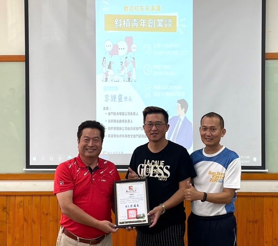 國立金門大學於10月31日上午由該校就業輔導暨校友服務中心成功舉辦了一場備受期待的職涯講座,主題講題為”斜槓青年創業談”。該活動邀請了國立金門大學的傑出校友-李鍾靈總經理作為主講嘉賓,分享他在不同領域的創業經驗。李鍾靈總經理在多個領域均有卓越的業務經驗,包括擔任金門巨舟電腦公司的負責人、光前觀光鹿場的負責人、紐約客服飾公司佐丹奴金門店的合夥人,以及孫東寶臺式牛排教父金門民族店的負責人,擔任多項公益團體理事長,企業經營有成,熱心公益服務社會。