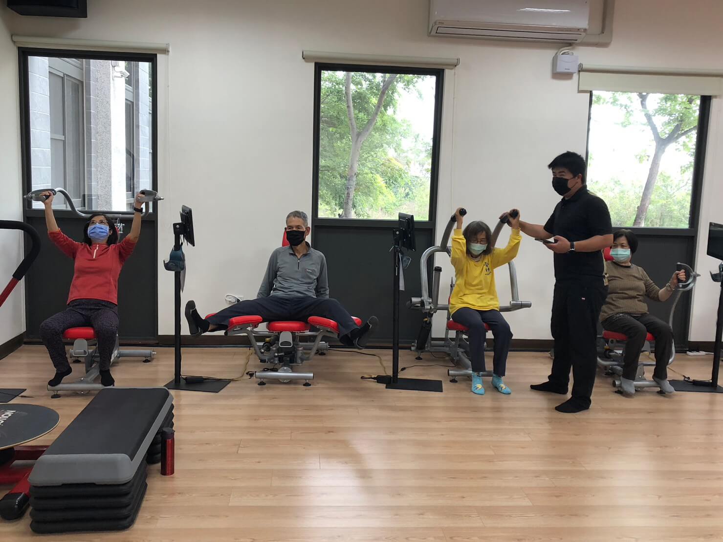 團體課程:以期為單位(一期十二週)聘請專業指導員提供長者多元化的健身課程,目前規畫的課程有樂活瑜珈、舒活肌力、體態雕塑、舞動有氧等,民眾可依自身需求及喜好挑選課程。    自主訓練:民眾可自行操作館內器材,並提供安全看視員巡場服務,如有不會操作的部分,都有專業人員提供協助及指導,目前自主訓練有集點送獎品活動,歡迎長輩多多使用館內器材。館內提供設備包括:(1)智慧環狀設備:二/三頭肌、肩部、股內/外肌、胸/背肌、腹肌、腿部肌群及平衡訓練設備。(2)有氧器材:健走機、橢圓機、踏步機。(3)徒手訓練:啞鈴、壺鈴、皮拉提斯環、彈力帶/繩、瑜珈墊/磚、小/大瑜珈球。 (4)放鬆設施:按摩椅、坐躺椅、筋膜球、滾筒。(5)檢測設備:身體成分分析儀(Inbody)、智慧行動智慧檢測箱。(6)運動保健相關書籍。