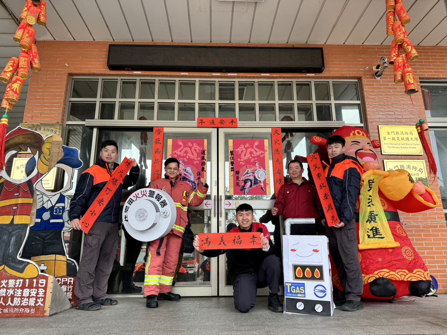 農曆新年將至,金門縣消防局第一大隊金城分隊透過自製宣導防災春聯及創意門神向民眾拜早年,也提醒民眾春節期間要注意居家防火安全及避免一氧化碳中毒。