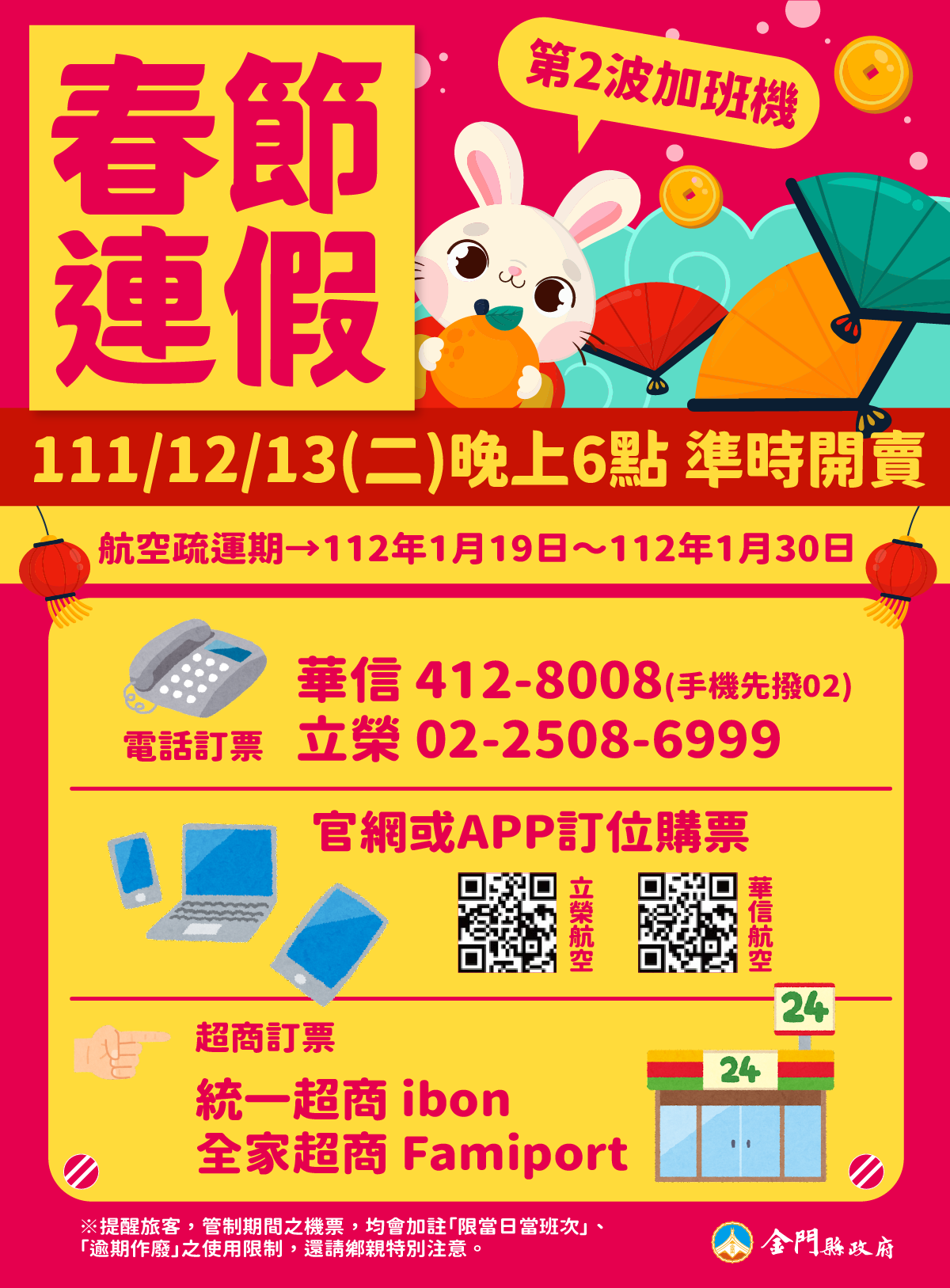 記者蔡青/縣府報導 為應鄉親返鄉過節需求,雙十連假臺金管制航