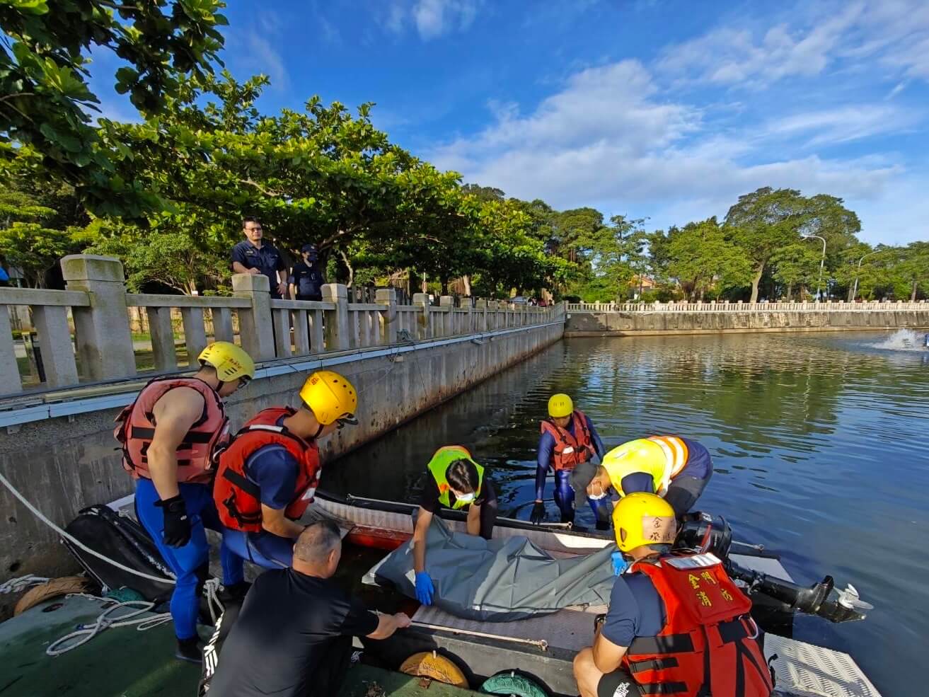 消防人員於6時29分趕抵現場後,發現一部疑似為該落水民眾的機車及一名男性趴臥於湖面上,呈現臉部朝下,背部朝上的狀態,初期指揮官小隊長錢志華立即指揮所屬消防同仁著救生裝備及攜帶繩索下水進行搶救,將溺者救援上岸後,其呈現OHCA狀態(無呼吸心跳),消防局陳國瑋副局長也於上午7時許抵達現場協助工作事宜,詳細原因後續交由現場警方鑑識調查及處理。