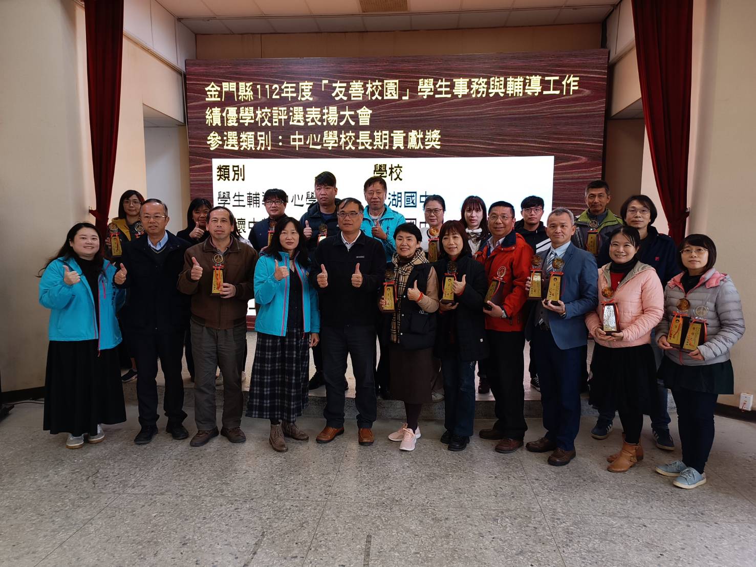 「金門縣112年度友善校園有品教育推動績優學校表揚頒獎典禮暨觀摩會」今天上午假金沙國中舉辦,表揚112年度推動有品教育表現卓越之學校,以獎勵本縣推動友善校園學生事務及輔導工作績優學校,發揮學生事務及輔導工作之功能。透過各績優學校分享及傳承推動友善校園學生事務與輔導工作經驗,提昇學生事務與輔導工作品質,期盼激勵教育人員積極參與學生事務與輔導創新工作,齊力營造友善校園。