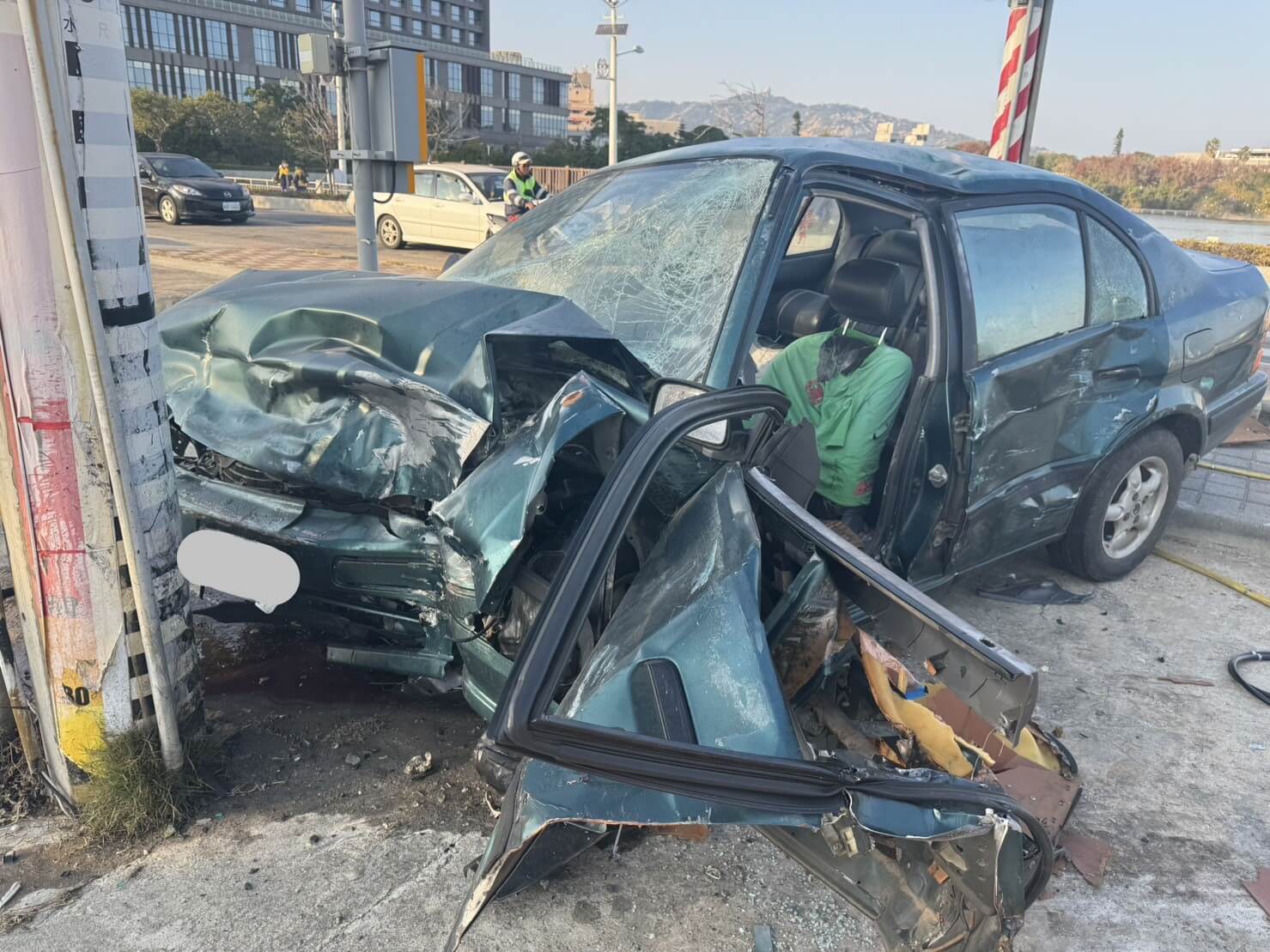 金門男搶黃燈撞車    男噴飛撞電線桿受困 .女公工友送公文遭撞送醫