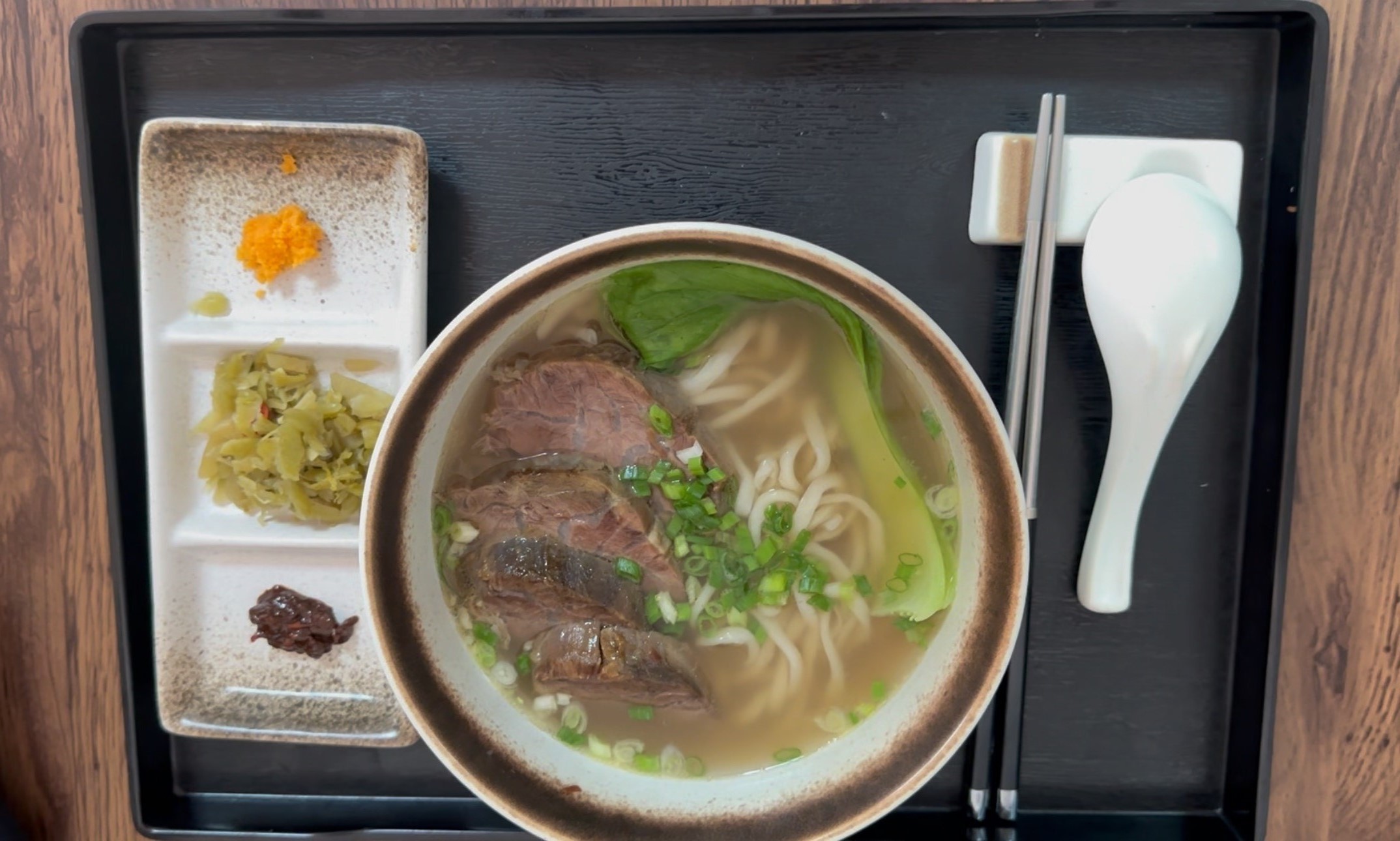 這碗就是傳說中要熬燉13個小時的牛肉麵是選用牛腱心為店裡肉上品!也是入口即化又彈牙的口感,湯頭是用牛骨、洋蔥、蘿蔔、大蒜熬8小時,牛腱心是用至少8種中藥材:甘草、陳皮、桂皮、花椒、月桂葉…一碗清燉牛肉麵要花13個小時才能端出在人客面前!