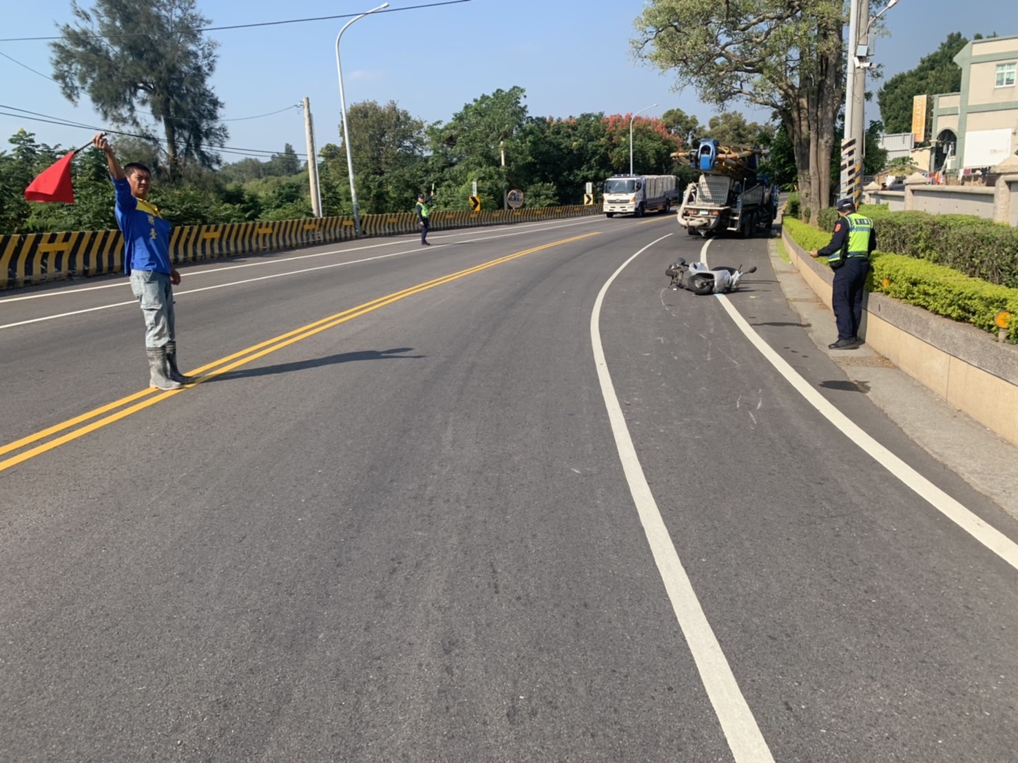 大貨車轉彎道擦撞機車 機車騎士送醫,