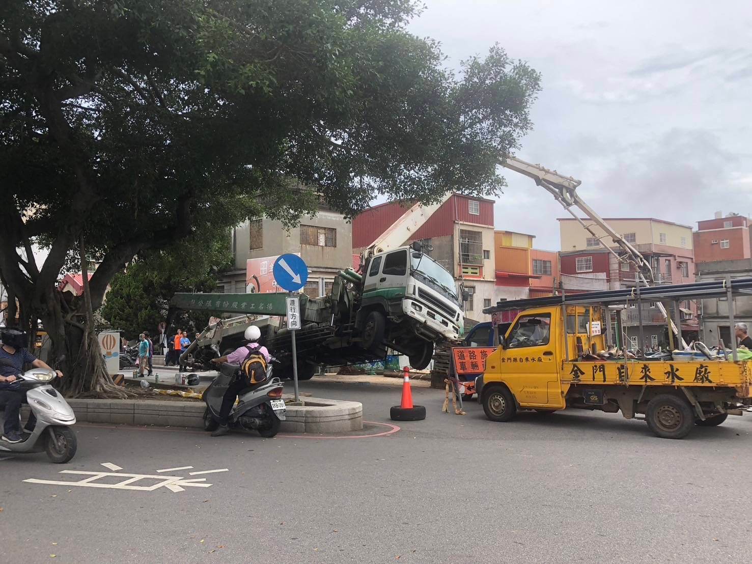 金門灌漿車鬧區翹孤輪耍特技? 車頭懸半空嚇壞民眾
