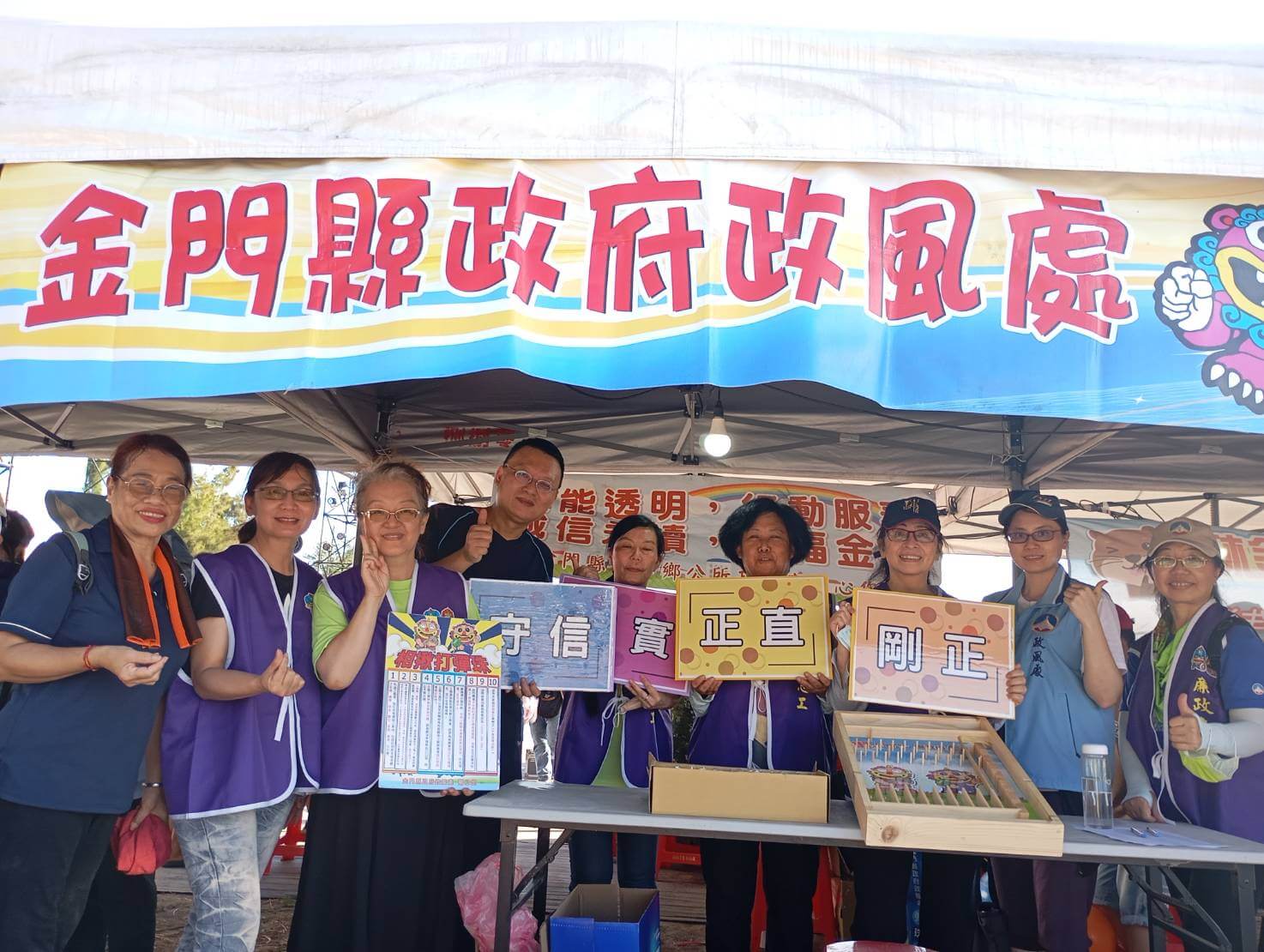 金門縣政府政風處廉政志工於7月21日運用金湖鎮「2024金湖海灘花蛤季」活動時機,在料羅82據點辦理社會參與廉政宣導活動,透過參與地區大型活動盛會聚集的人潮,到場擺攤宣導,落實全民反貪及廉潔意識,建立廉能政府。