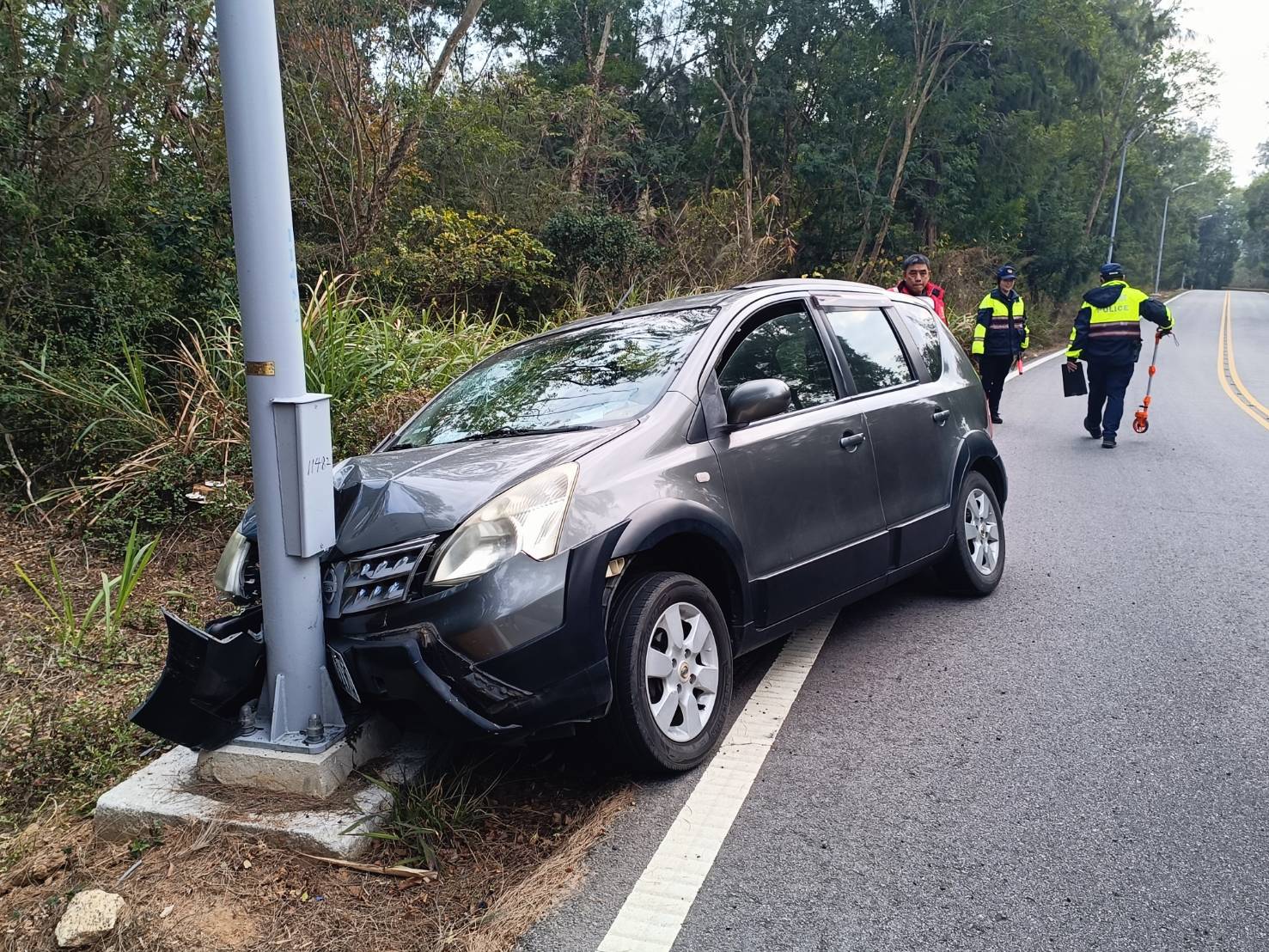 114年4月15日下午13時5分許,一名李姓男子駕駛自小客車,沿環島北路由金沙鎮中蘭往沙美方向行駛,疑似精神不濟,於環島北路四段警光會館路段,擦撞對向車道路樹及斗門營區圍牆,導致車頭及前擋風玻璃毀損。事發當時,斗門營區陳姓士官長聽見撞擊聲響,立即偕同營區官兵施以援救並通報警消,警消獲報後迅速到場處理及協助送醫,駕駛人經酒精測試,並無酒駕情事,僅身體擦挫傷,目前在金門醫院治療,肇事責任由警方調查中。