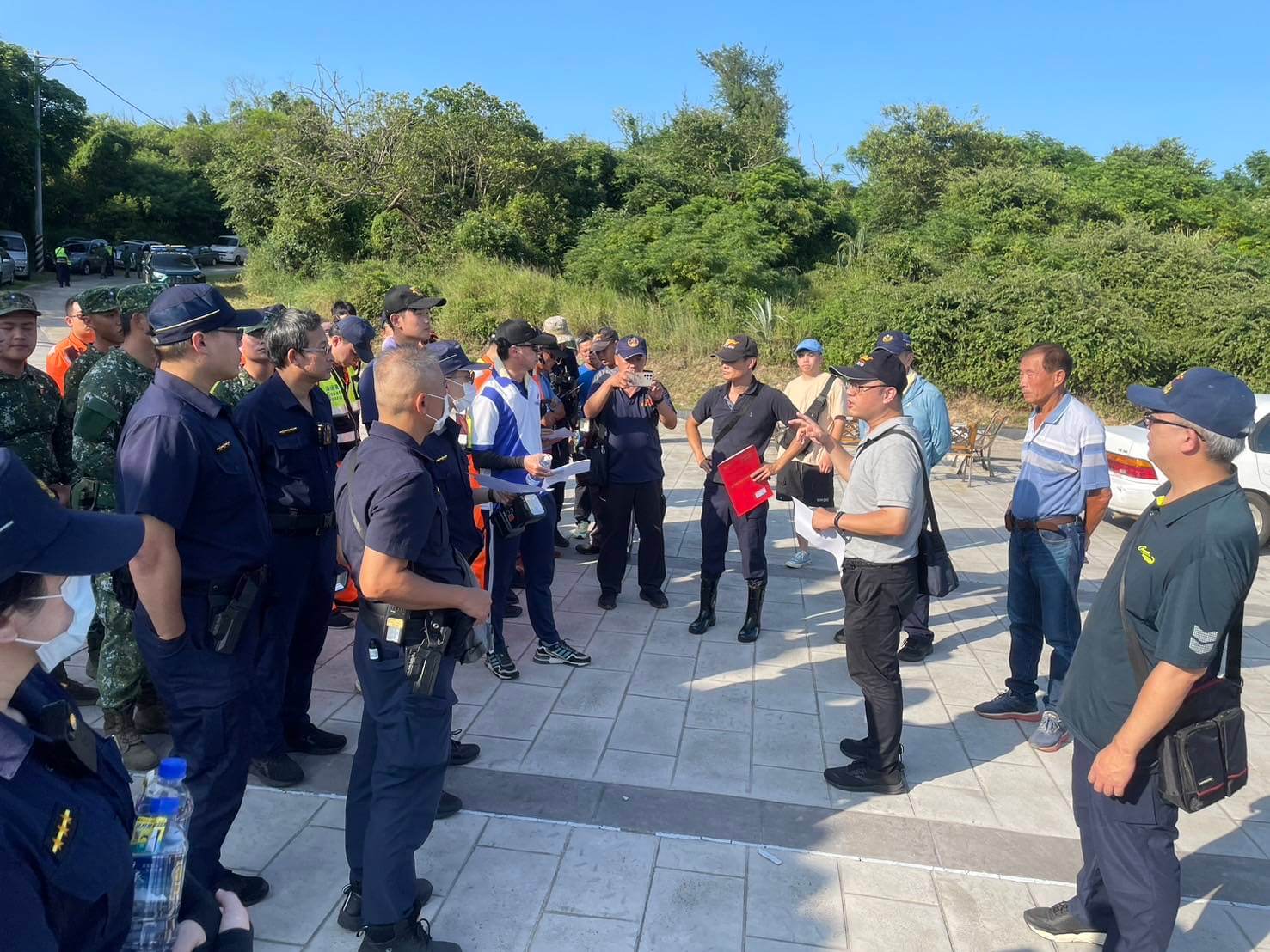 警方鎖定該區域展開調查搜尋工作,自本(9)月21日起迄至23日止共計動員警(義)消、岸巡、軍方及民力等各方之人力,執行搜尋勤務5勤次,動員人力達百人次以上,惟仍無所獲。/圖金門警察局提供