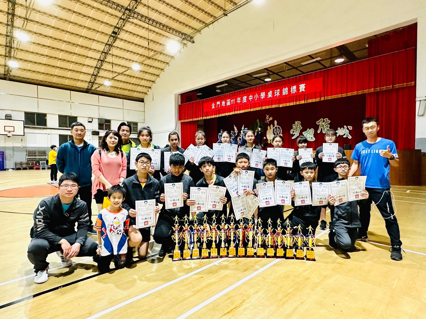 金寧中小學桌球隊參加111學年度中小學桌球錦標賽,在國中組桌球賽事的七個項目當中榮獲了六金三銀一銅的佳績,打破校史最佳紀錄,創造最優異的表現,更取得了六張全中運參賽門票。