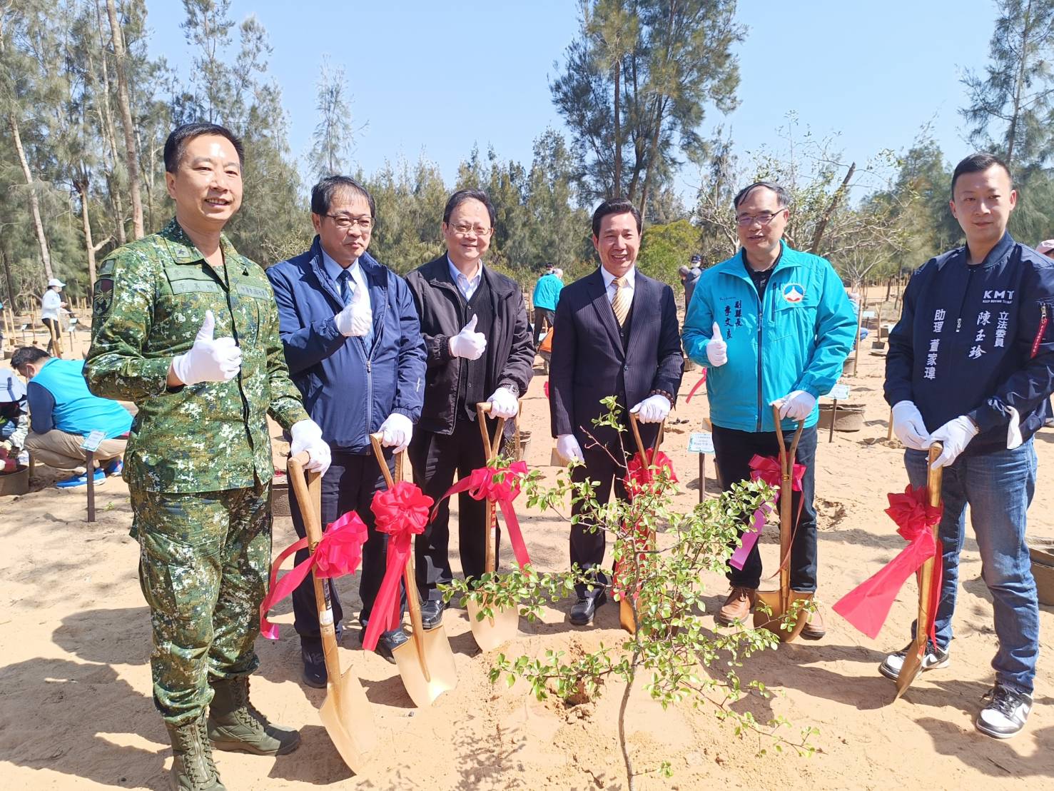 蒞臨的長官貴賓一同種下原生樹種海桐。/圖葉建雄攝
