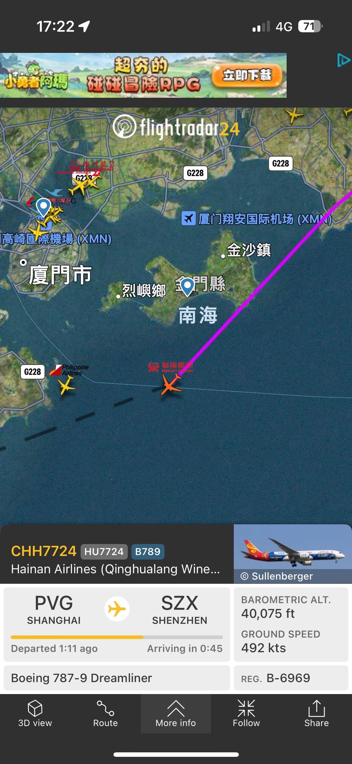 經觀察下午數架民航機飛越金門及馬祖附近及上空時,高度未進入我方所轄金門及馬祖終端管制區域,尚未影響我方民航機飛航,我方航管單位將持續注意,確保我方民航機飛航安全。另相關資訊均轉知我軍方單位。