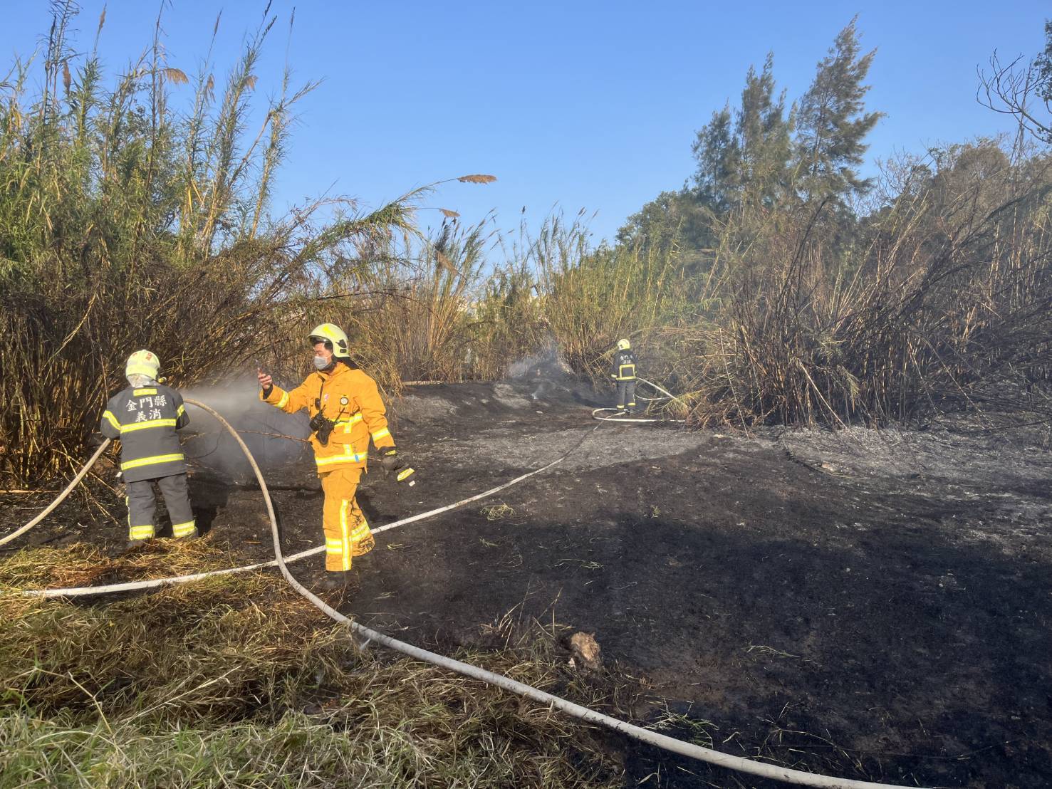 金門縣消防局獲報,民族路這間民宅鐵皮屋失火,濃煙竄出,緊急出動金城分隊以及金寧分隊各式消防車輛7車及警義消20多人,由第一大隊大隊長董必文率隊前往搶救。消防局表示,該場火警的發生地點是位於民族路狹小巷弄內因此擔任初期指揮官的金城分隊長蔡智成立即指揮所屬人員部署水線入室搶救,隨後第一大隊大隊長董必文亦到場接續指揮救災。大隊長董必文表示,火場為鐵皮2樓加蓋民宅,在2樓臥室起火燃燒,所幸救災人員佈署水線滅火奏效,現場又有多名義消加入,在消防及義消人員全力投入搶救下,火勢迅速在車輛到達後5分鐘內控制、撲滅,燃燒面積約3平方公尺,平時作為臥室的火場,已付之一炬,焦燒一片;幸好當時屋主正好外出,未釀傷亡。相關財物損失及詳細起火原因,由消防局火災調查科進行後續鑑定中。