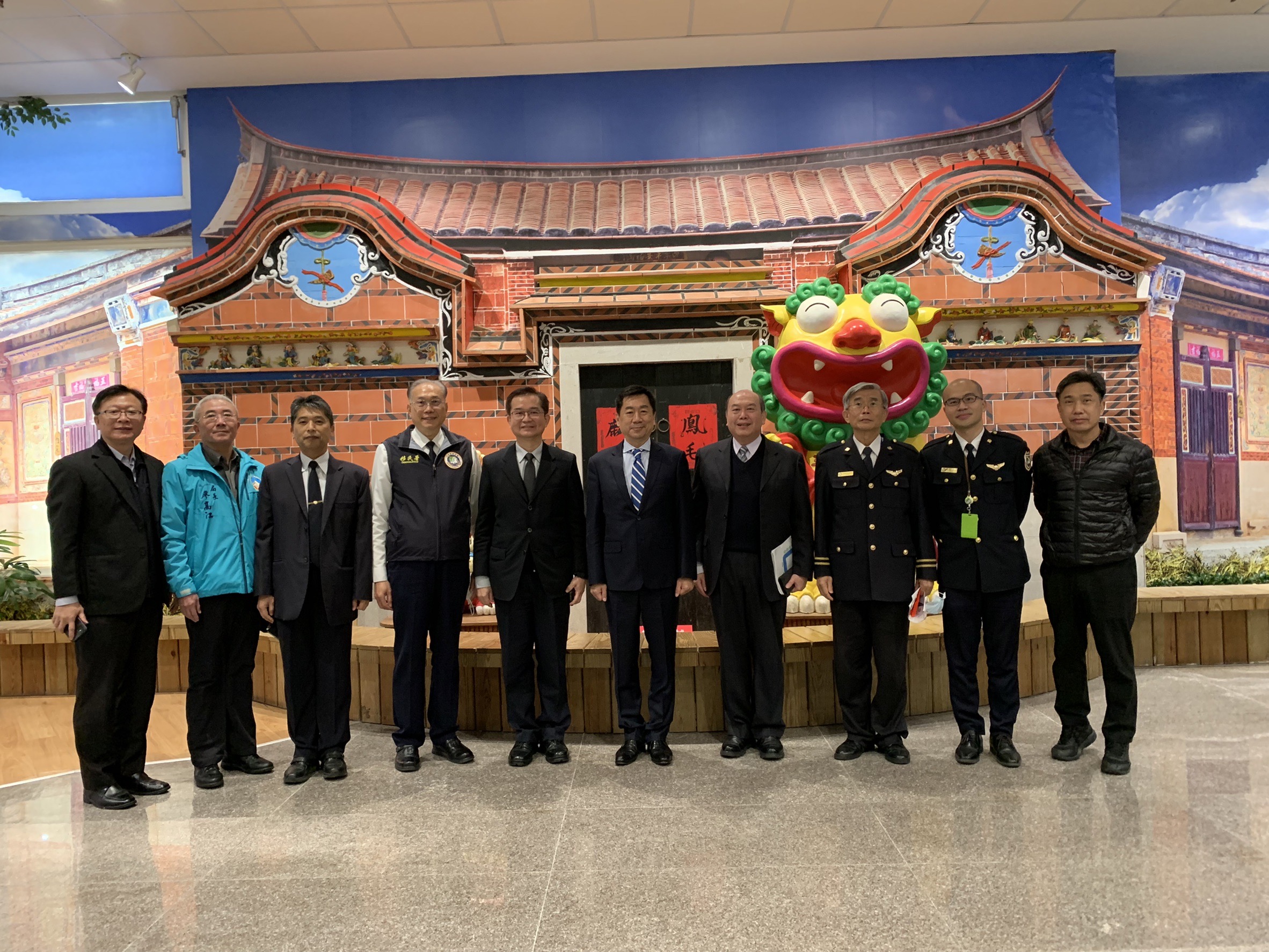 莊勝雄一行人於水頭通關中心內合影/圖金門移民署提供