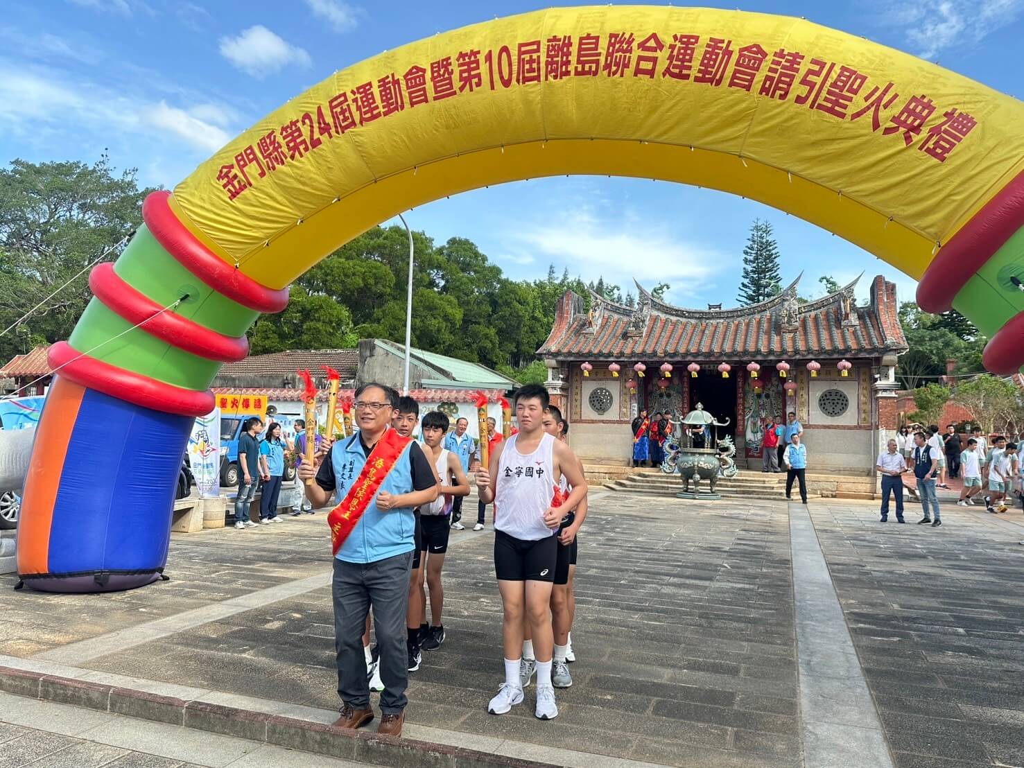 本屆聖火傳遞由金寧中小學承辦,請引聖火典禮依循古禮祭拜,並向牧馬侯神君聖像行三鞠躬禮後,由副縣長李文良請引聖火並進行聖火傳交,意味此次金門縣第24屆縣運會暨第10屆離島運動會即將拉開序幕,賽會將於10月17日至19日三天在本縣縣立體育場登場,距離本縣上次承辦離島聯合運動會已相隔12年。