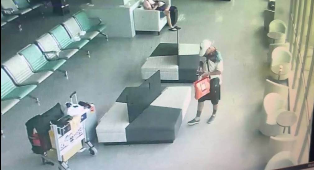 後經航警所員警調閱監視器畫面追查發現係遭1名著白衣男子竊取,其於監視器畫面上顯示係刻意竊取,遂立即將受理遺失物提升為竊盜案;經通報線上執行警力及航站各駐站單位全面依特徵搜尋該竊嫌,終於上午9時25分於機場外第一停車場內發現戴姓竊嫌,遂通報線上警力到場圍捕緝捕到案,並於所攜之行李內蒐扣至報案人遭竊之名產。