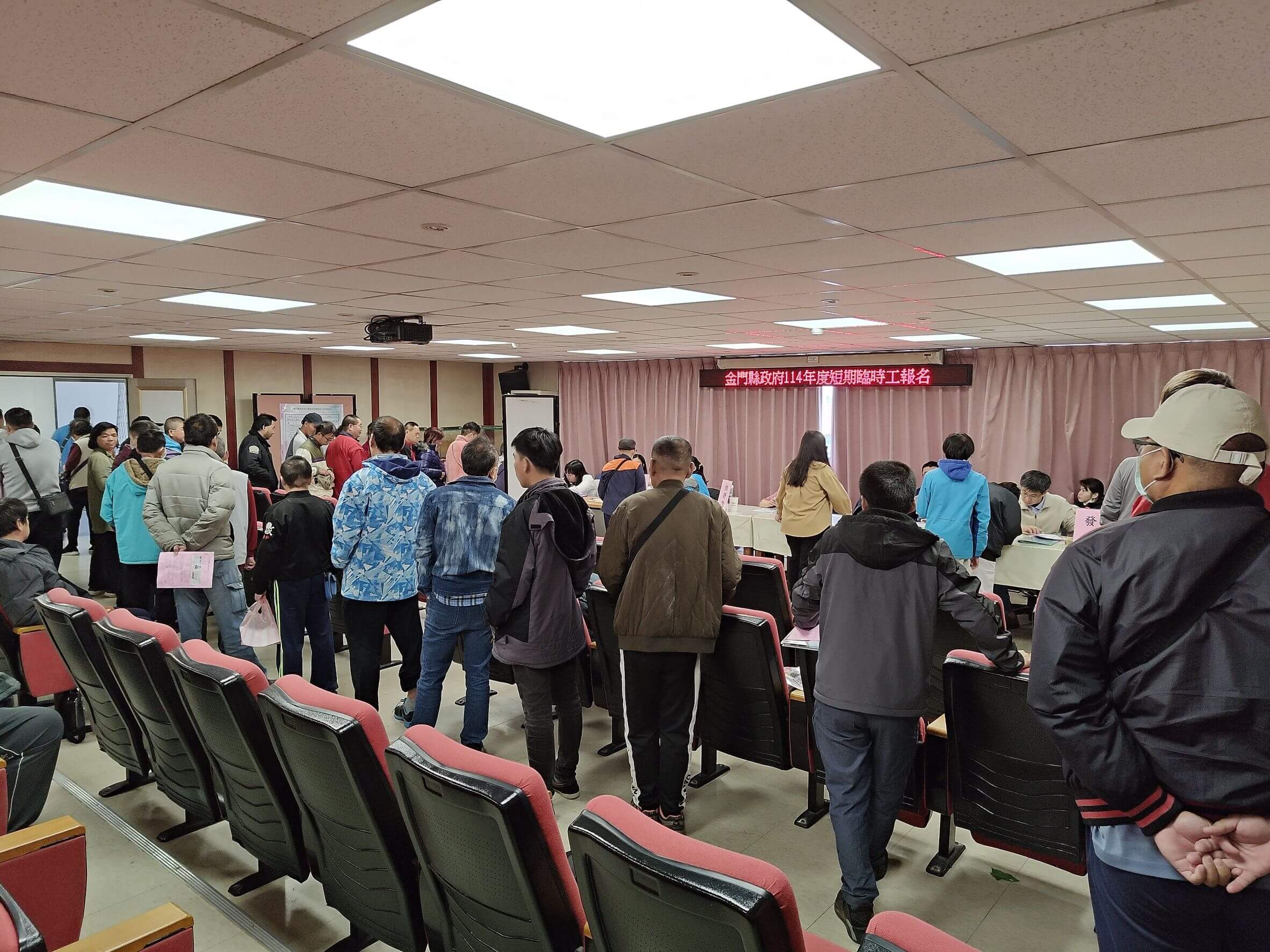 縣府續辦具有公法救助性質之短期臨時工計畫,明年度總共提供270個按日計酬短期臨時工名額,經過11月22、23日兩天的報名,最後統計共有504人報名,而金門縣政府也在昨日上午9時起,在金城縣立體育館室內籃球場(各鄉鎮公所臨時工)以及會議室(縣府單位臨時工),採取全程錄影的方式進行公開抽籤作業。3日的公開抽籤作業由金門縣政府社會處副處長王茲繐、人事處及政風處代表陪同下主持,並會同社會處勞工行政科工作人員共同辦理,在到場抽籤的報名者見證下,逐一抽出正取與備取名單。