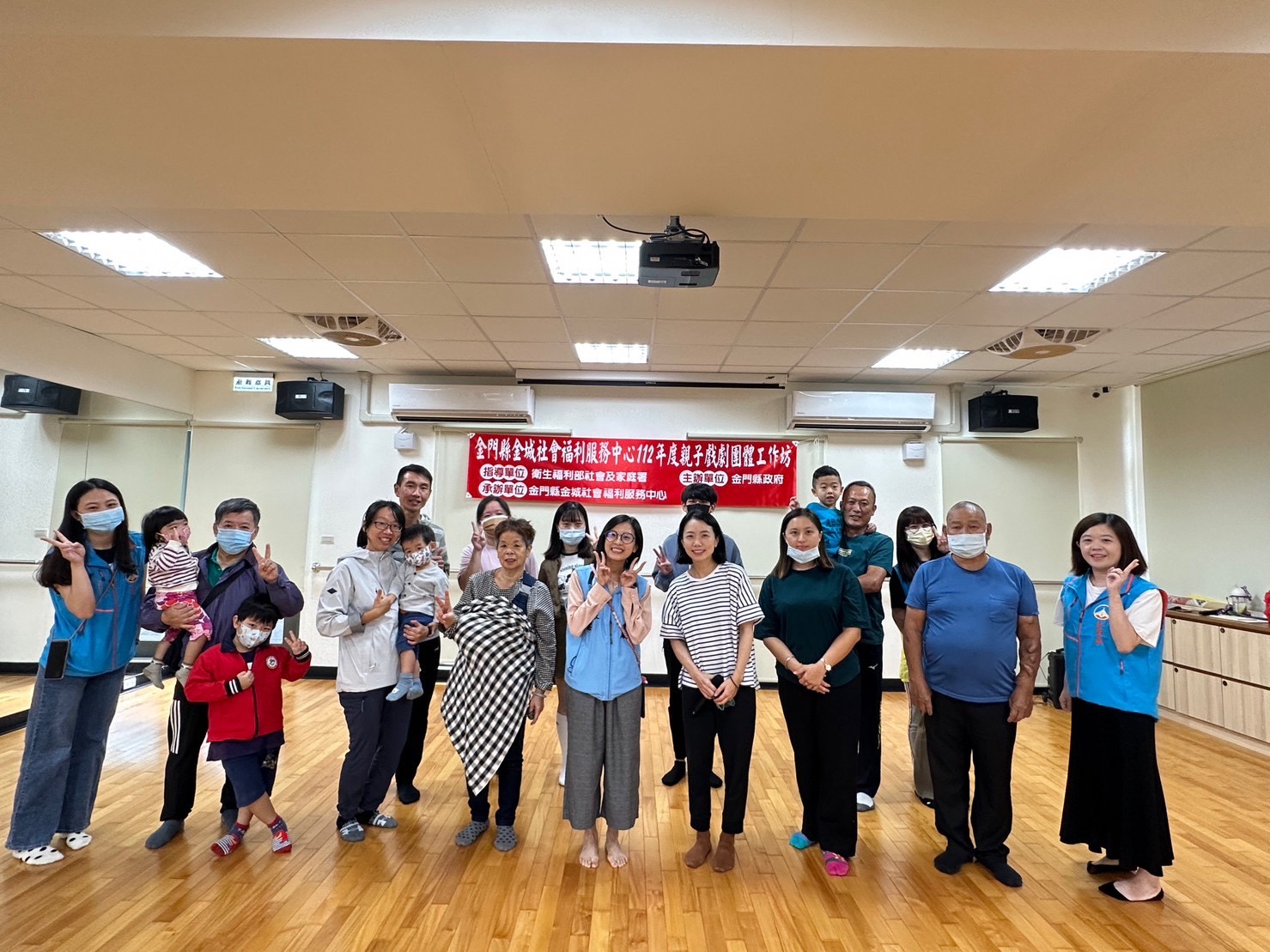 社會處金城社會福利服務中心於11月11、12日上午9時在金門縣金城綜合社會福利館舞蹈教室及多功能教室辦理為期兩天的「112年度親子戲劇團體工作坊」,聘請表演藝術董佳琳老師及黃若茵老師講授,本次團體工作坊參加對象為社會福利服務中心脆弱家庭及ㄧ般民眾親子家庭,計有25人參與。