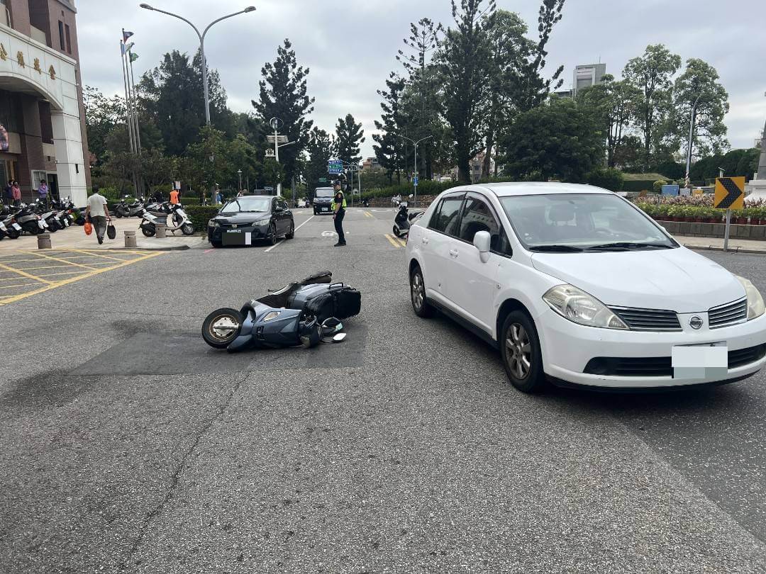 金城鎮民生路金城車站前路段,今(13)日10時許發生1起交通事故,一名莊姓男子騎乘普重機車沿民生路慢車道左轉往金城車站方向行駛,與由陳姓女子所駕駛直行往縣政府方向之自小客車發生碰撞,事故造成莊男身體多處擦挫傷,由消防分隊送金門醫院進一步治療。金城分局現場對雙方駕駛實施酒測,均無酒駕情形,肇事原因釐清中。