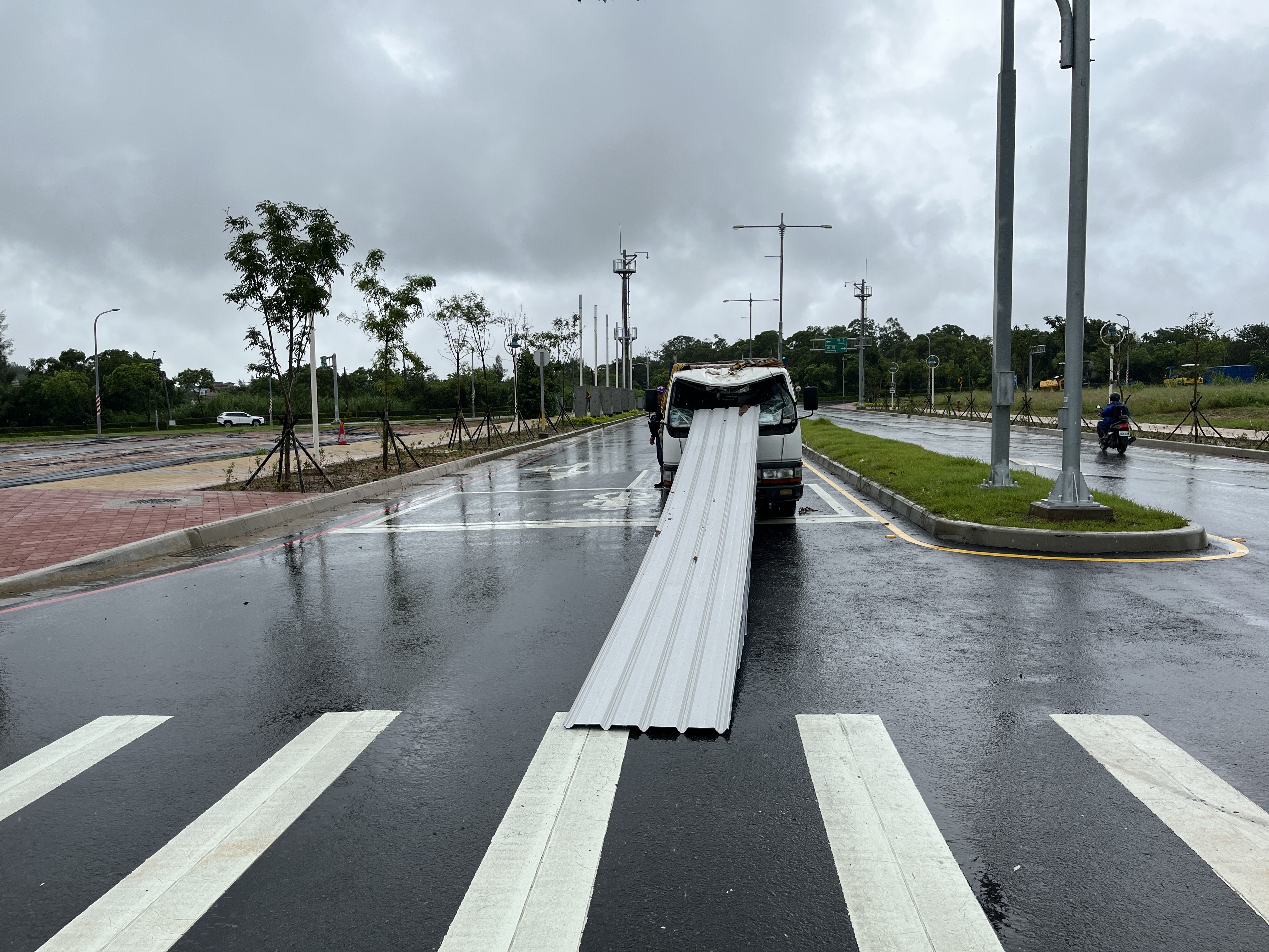 金寧鄉金烈大道往金門大橋號誌路口本(20)日9時55分許發生一起交通事故,經員警趕赴現場發現,係李姓男子駕駛自小貨車由金烈大道湖下往金門大橋方向直行,於金門大橋前交通號誌前停等紅燈時因貨物(鐵浪板)未固定致滑落貨車前後倒插前擋風玻璃事故,造成自小貨車前擋風玻璃損壞,所幸無人受傷,事故引起路過民眾的關注,警方現場對李男實施酒測,初步排除酒後駕車行為,至於肇事原因由金城分局釐清中。