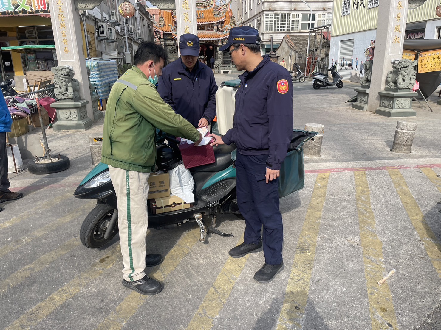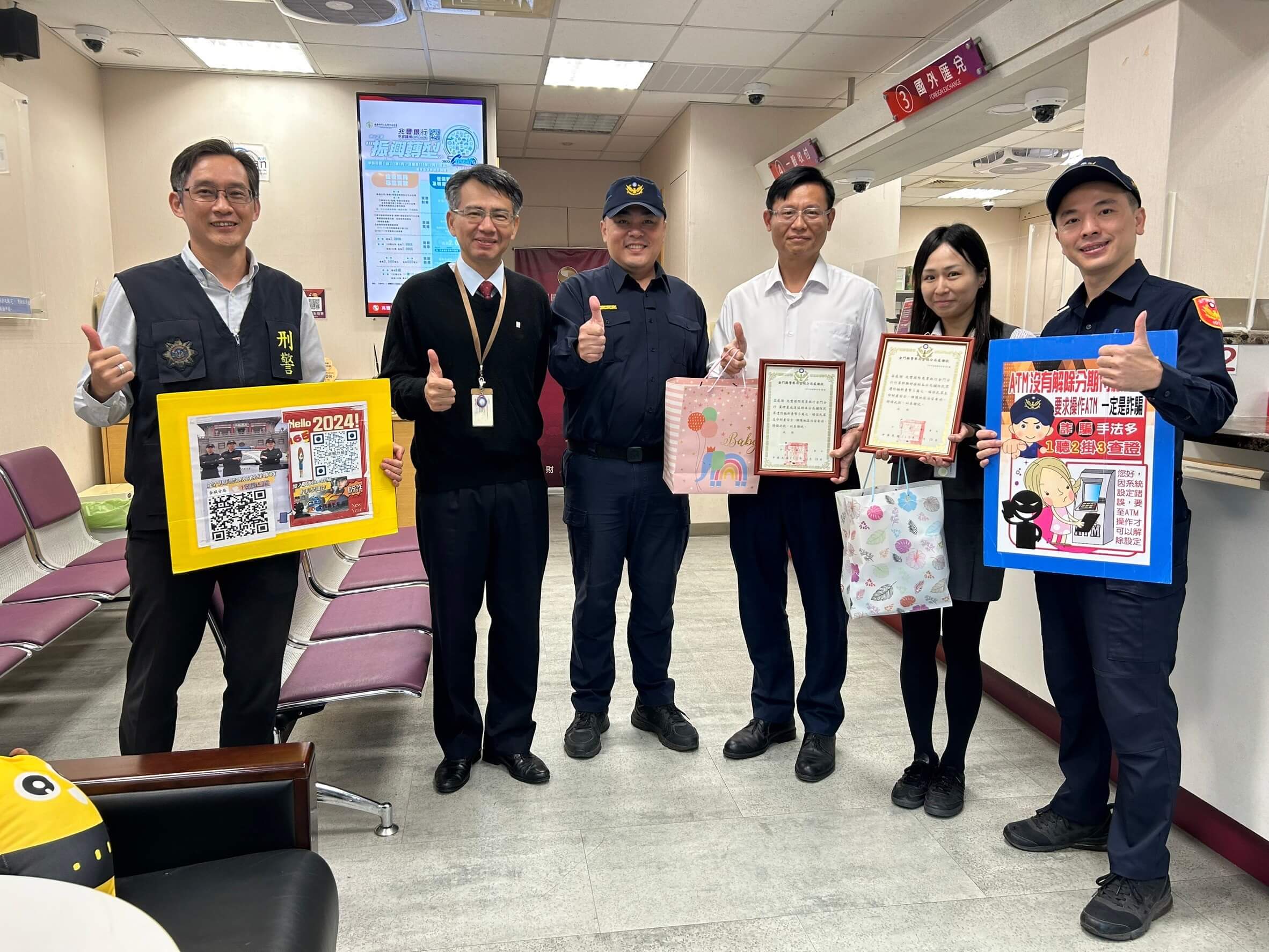 前排由左至右:偵查隊長林練雄、分局長陳盈元、金門郵局行員馬玉君、金城所長楊文寧圖金城分局提供