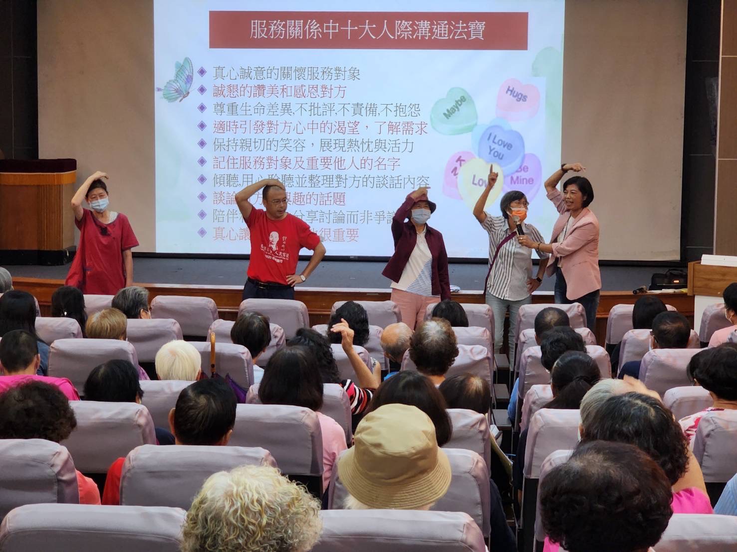 本次據點會議亦辦理幹部研習,特邀臺北延希職能治療所柯宏勳所長,主講:「打造高齡健康新生活」,從高齡、活動安排、支援自立及生活促進四個面向,切入高齡者健康、據點活動、生活再設計議題,期能加強據點幹部對於高齡身心靈關注、據點即是日常、無齡健康生活等觀念倡導。另於下午時間辦理志工在職訓練,邀集各據點志工參與,由佛光大學輔導團隊之據點輔導員陳召佳帶領工作坊,運用正念冥想及圖說,帶領志工體驗減壓生活,畫出屬於自己的曼陀羅,讓志工在投入服務之餘,也能有片刻的休息和充電,透過與夥伴的分享交流,能量滿滿地回到服務場域。