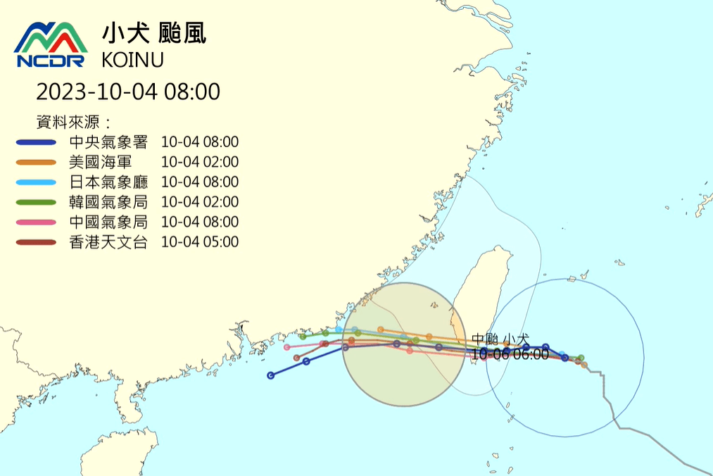 [小犬颱風]強風時段:10/5(四)中午過後 ~ 10/6(五)整天